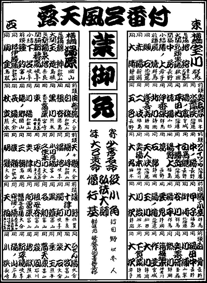 有名な温泉地を番付したもので、選考基準は、利用の有料・無料