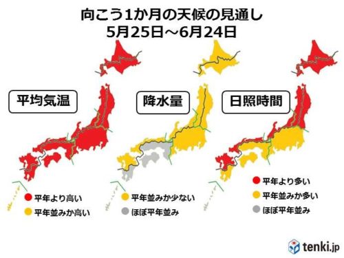 梅雨らしい季節となりそうですが、平年に比べ晴れる日が多い見込みのようです。