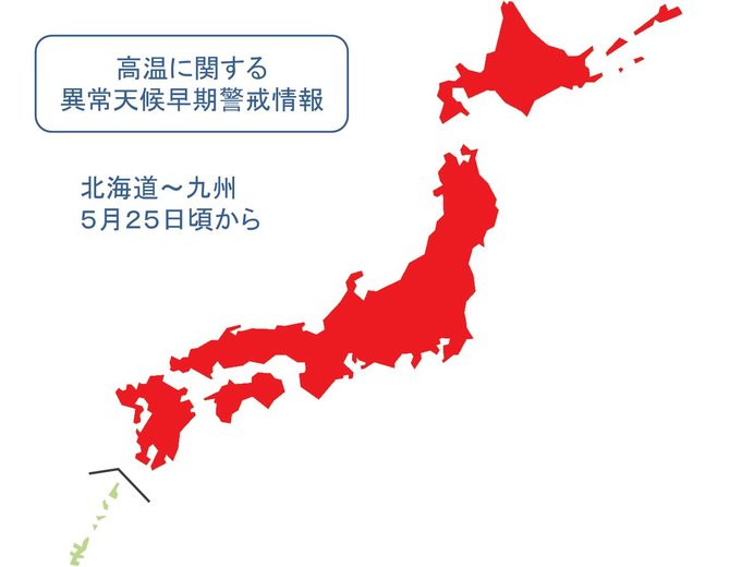 20日、気象庁は北海道から九州南部にかけて高温に関する